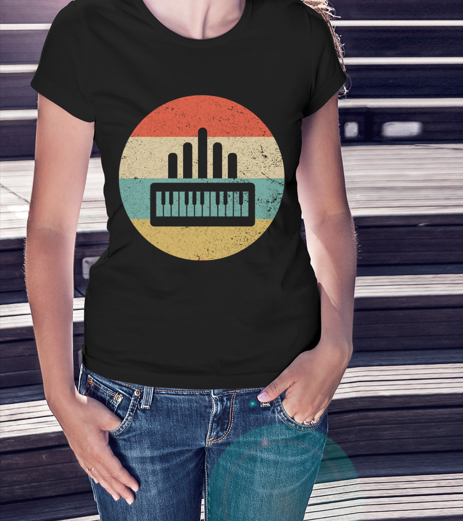 Vintage Retro Organ Keyboard With Striped Circle T-Shirt