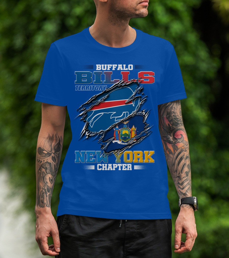The Buffalo Bills Territory New York Chapter T-shirt is designed for everyday wear and a consistent fit. Fabric is pre-shrunk ring-spun cotton with durable stitching. See the size chart below for exact measurements.