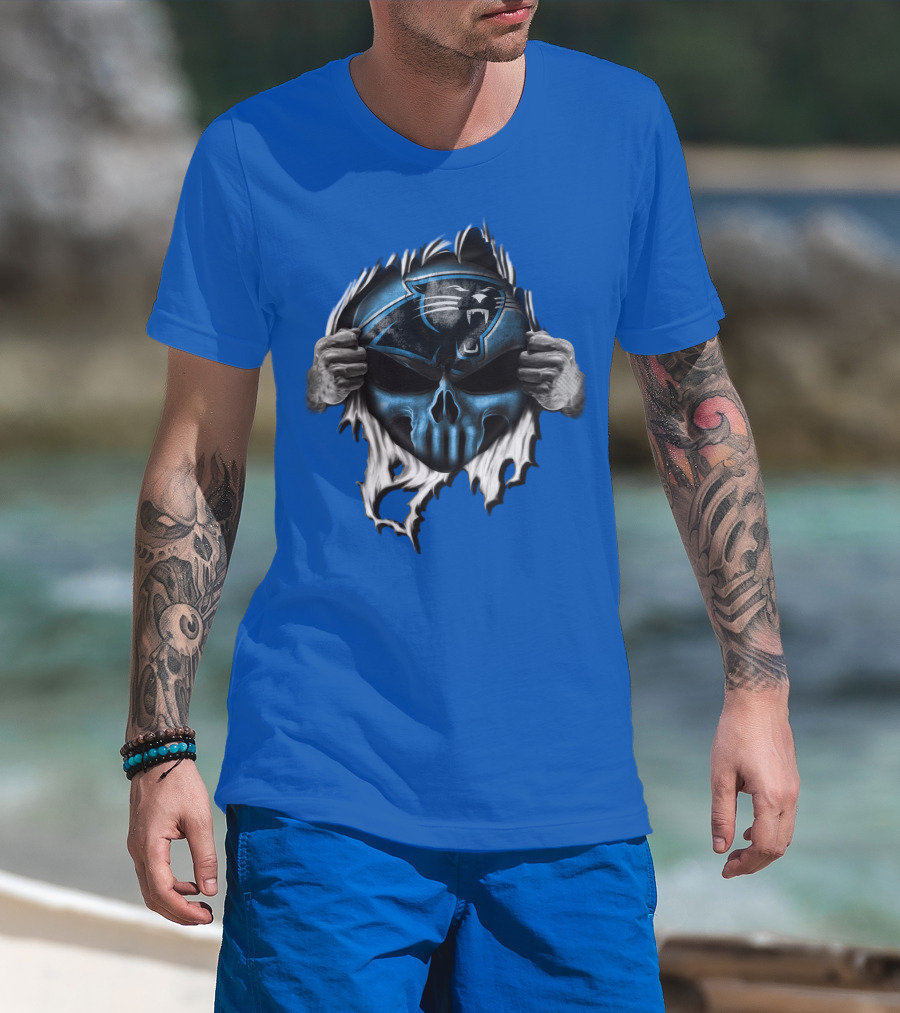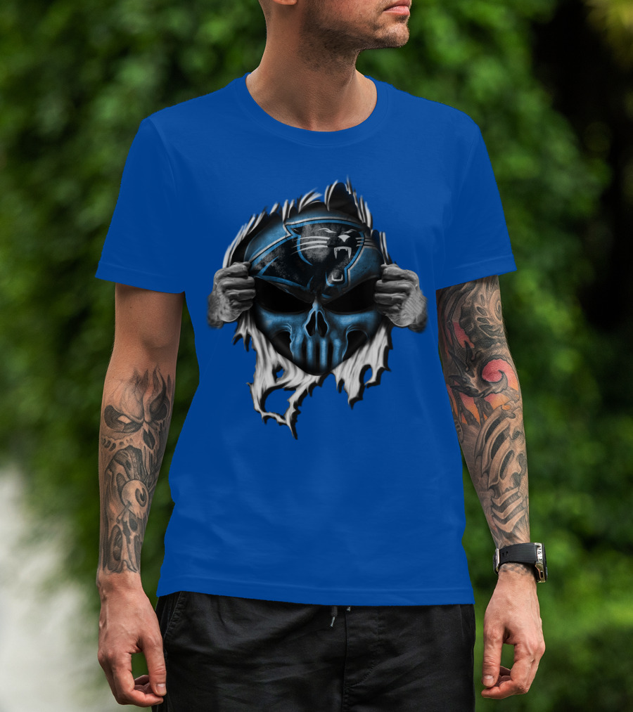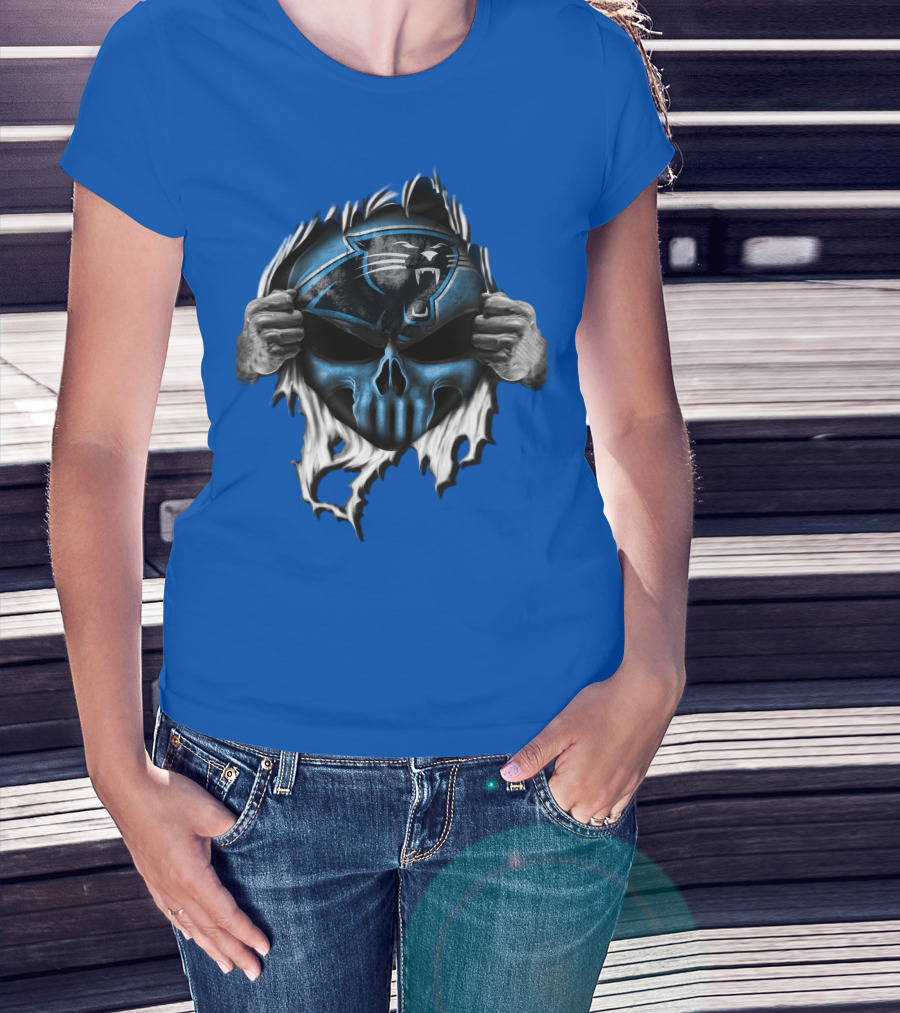 The Carolina Panthers Skull Logo Rip T-shirt is designed for everyday wear and a consistent fit. Fabric is pre-shrunk ring-spun cotton with durable stitching. See the size chart below for exact measurements.