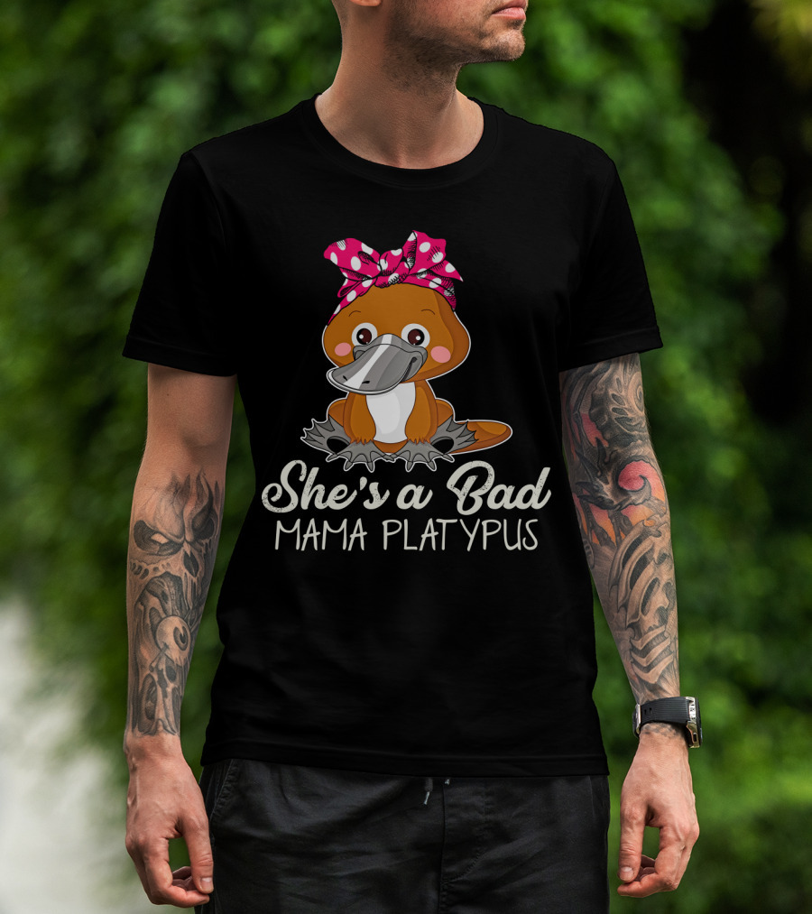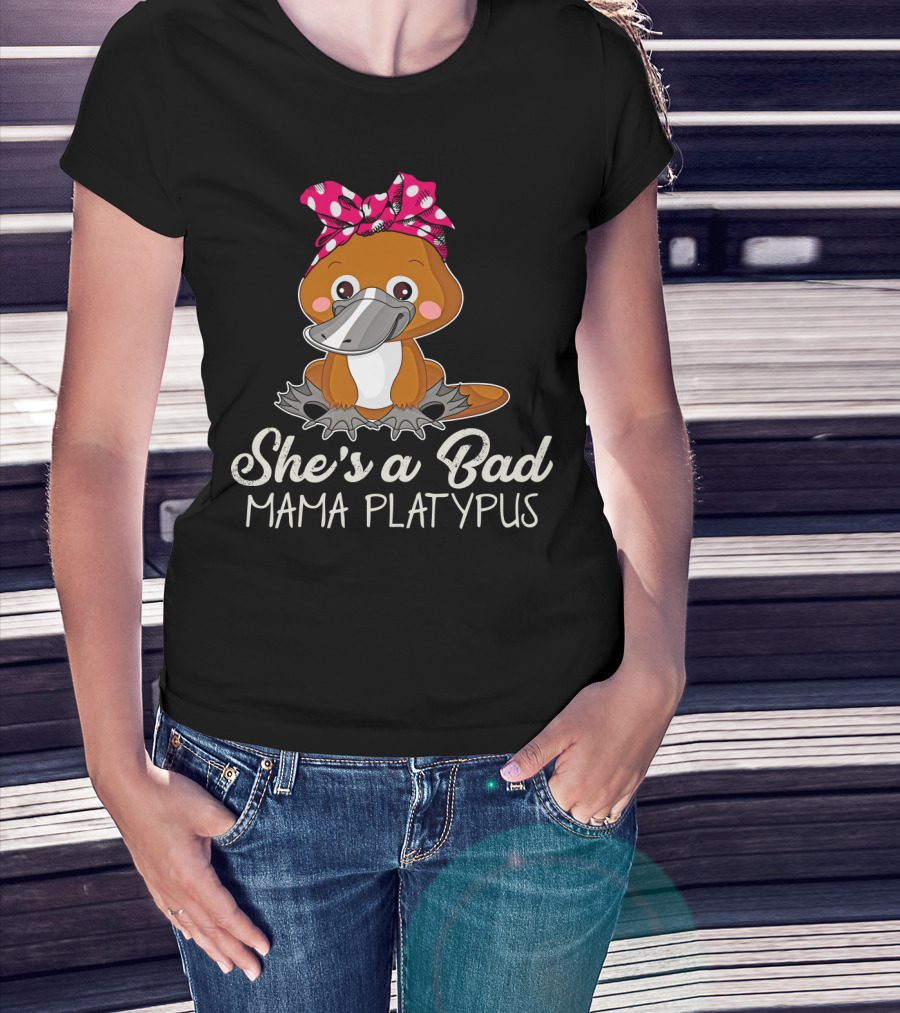 She's A Bad Mama Platypus Cute Cartoon Character With Pink Polka Dot Bow T-Shirt