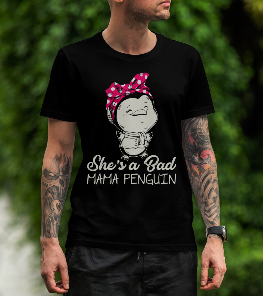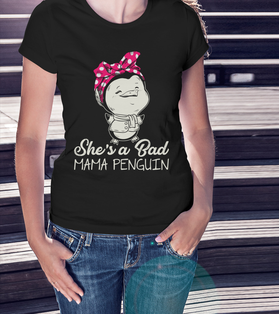 She's A Bad Mama Penguin Rosie The Riveter Parody With Bow T-Shirt