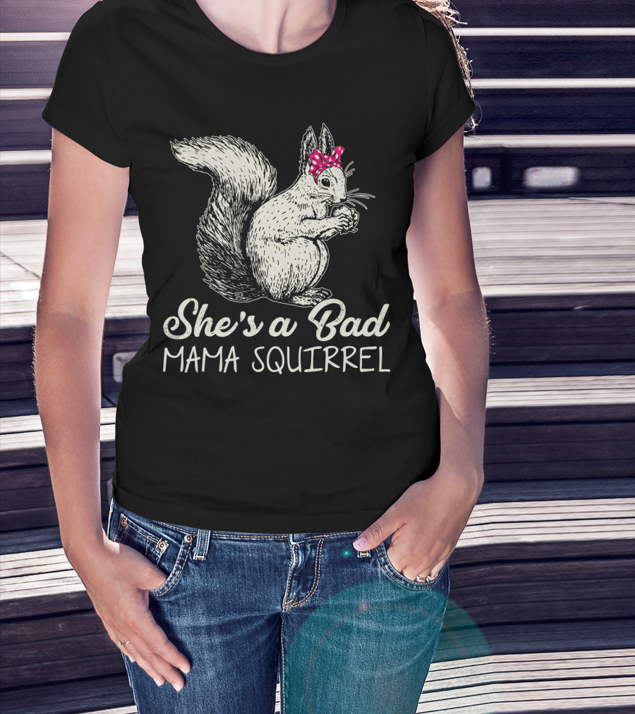She's A Bad Mama Squirrel With Red Polka Dot Bow T-Shirt
