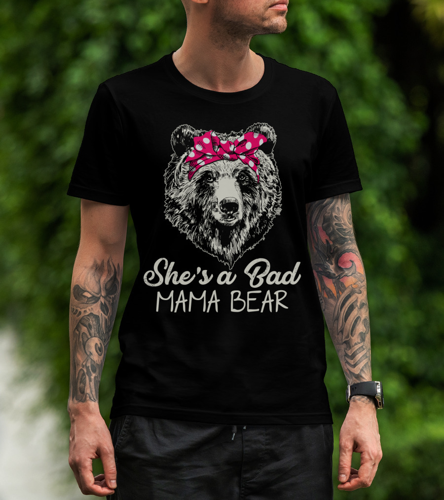 She's A Bad Mama Bear With Polka Dot Bow T-Shirt