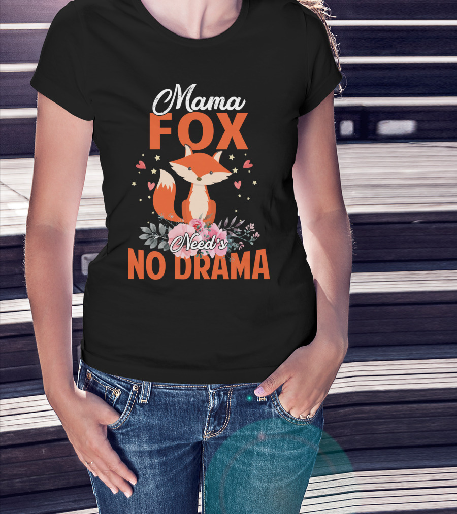 Mama Fox Need's No Drama With Heart And Floral Accents T-Shirt