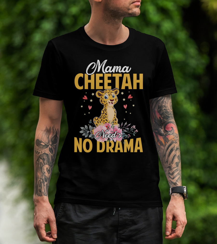 Mama Cheetah Need's No Drama Cute Cheetah Surrounded By Flowers And Hearts T-Shirt