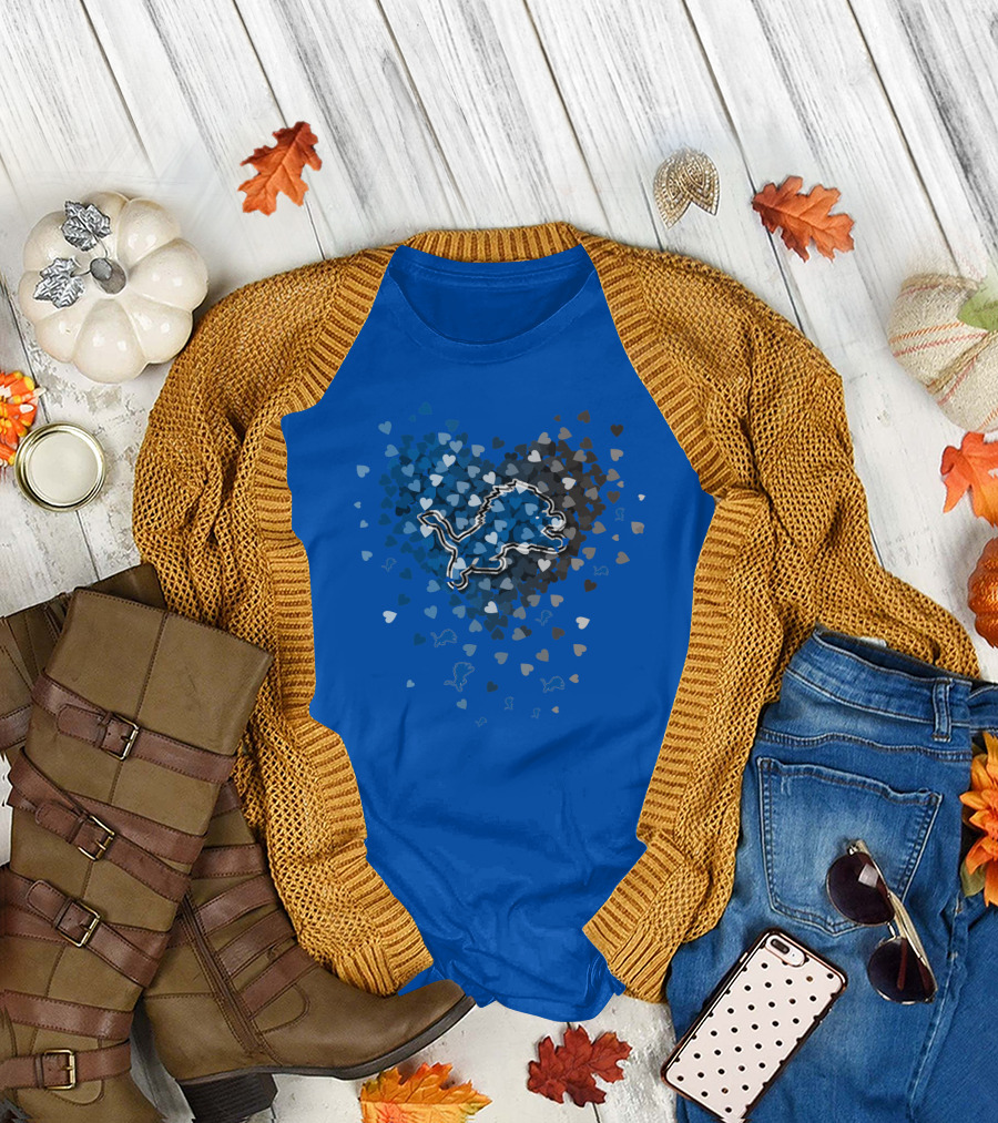 Detroit Lions Heart Shape Blue And White Logo With Hearts T-Shirt