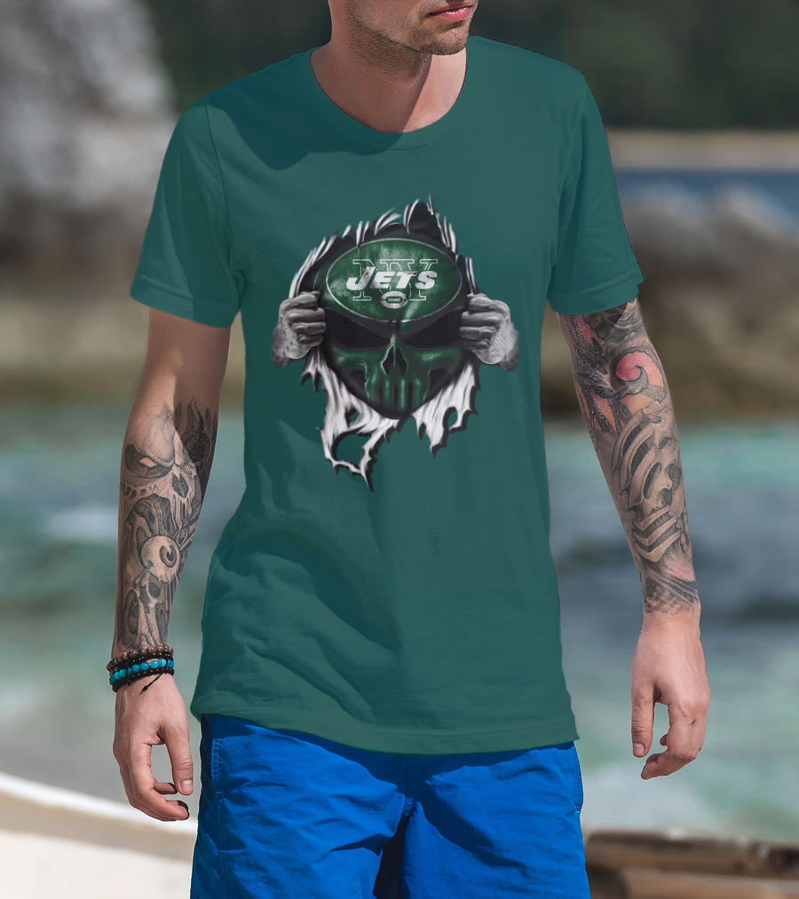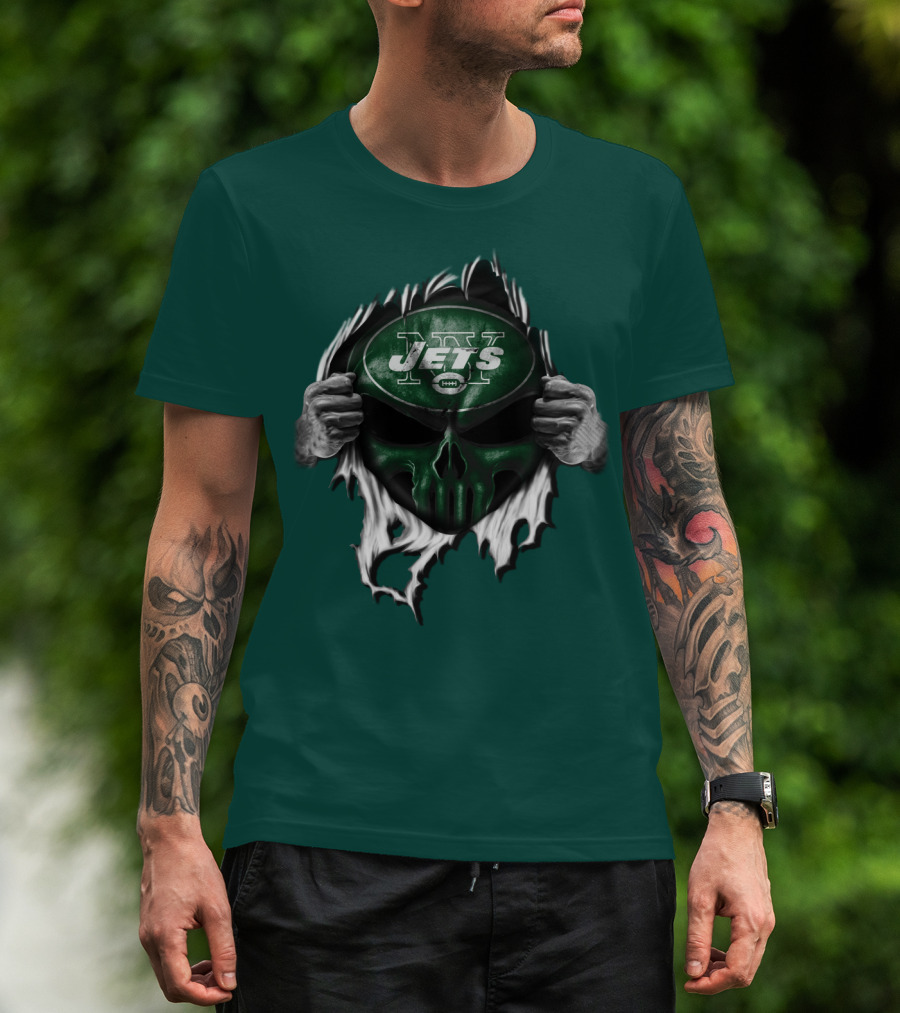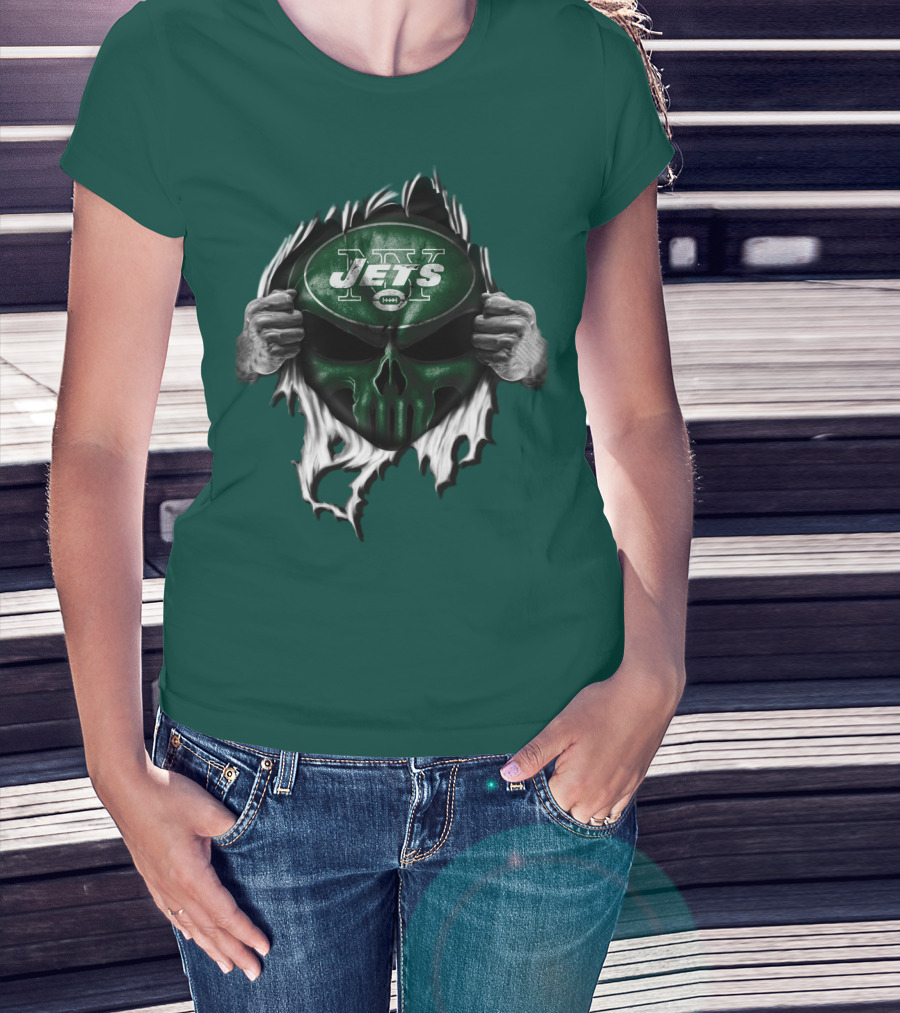 New York Jets Skull Ripping Football Helmet T-Shirt