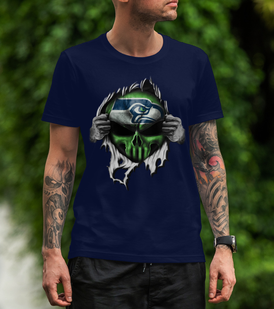 The Seattle Seahawks Skull Ripping T-shirt is designed for everyday wear and a consistent fit. Fabric is pre-shrunk ring-spun cotton with durable stitching. See the size chart below for exact measurements.