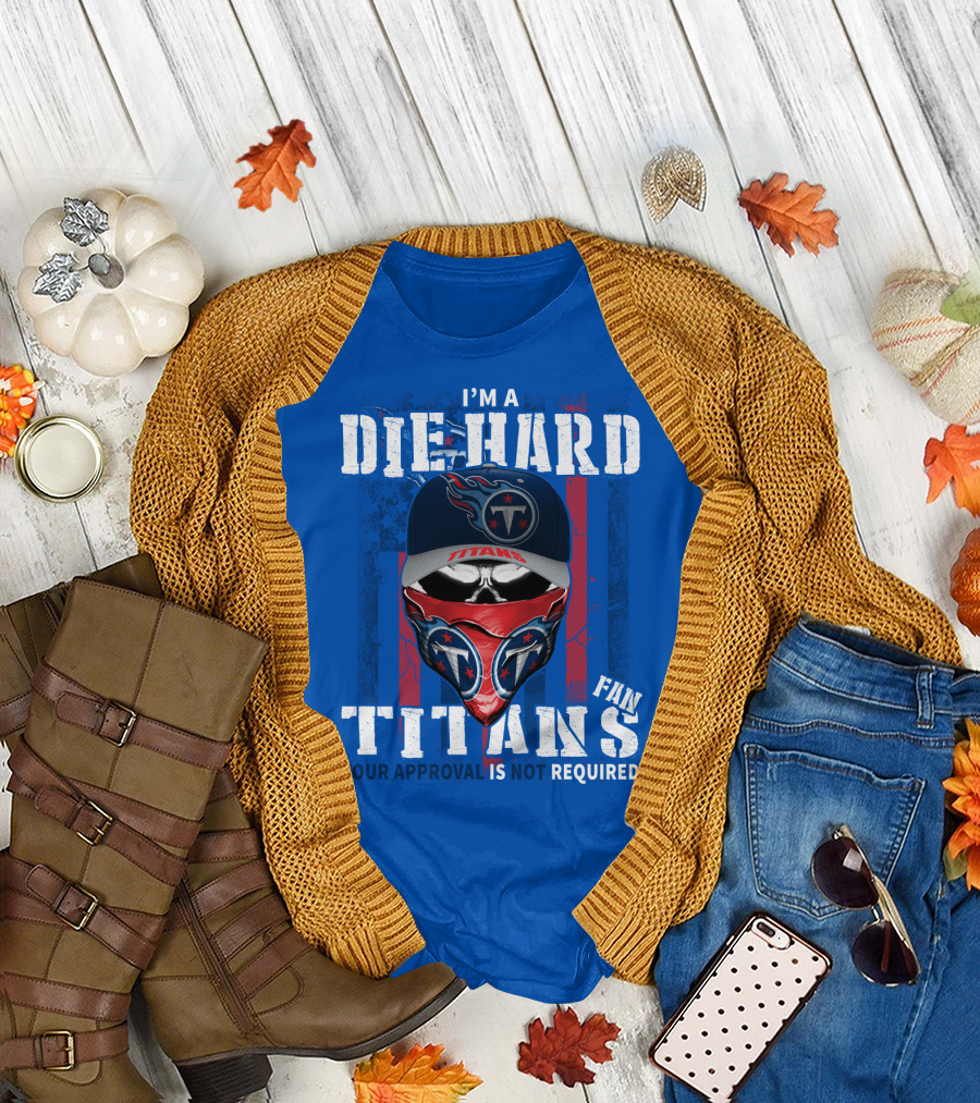 The I'm A Die-Hard Tennessee Titans Fan Your Approval Is Not Required T-shirt is designed for everyday wear and a consistent fit. Fabric is pre-shrunk ring-spun cotton with durable stitching. See the size chart below for exact measurements.