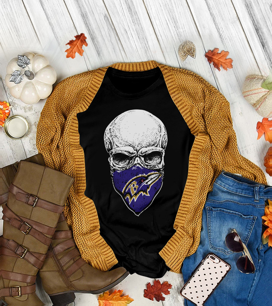 The Baltimore Ravens Skull Bandana T-shirt is designed for everyday wear and a consistent fit. Fabric is pre-shrunk ring-spun cotton with durable stitching. See the size chart below for exact measurements.