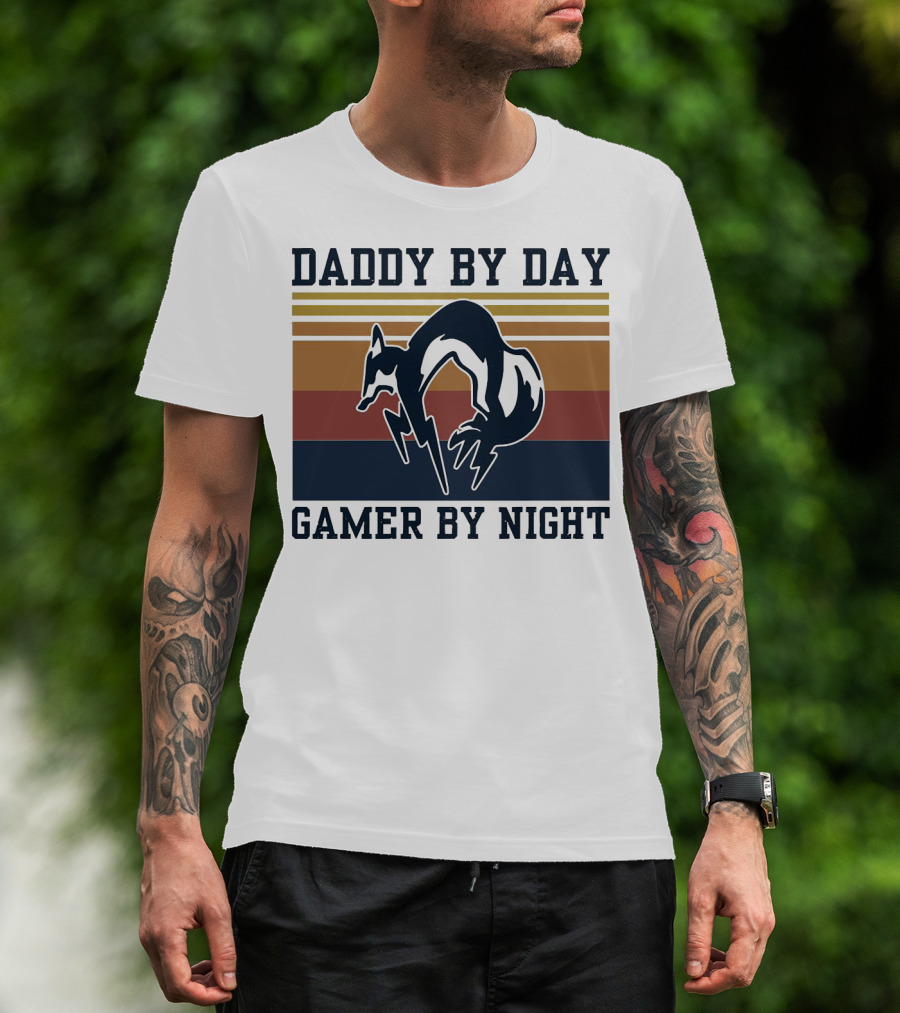 Daddy By Day Gamer By Night Retro Foxhound T-Shirt