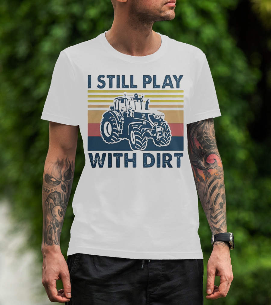 I Still Play With Dirt Tractor Retro Stripes T-Shirt