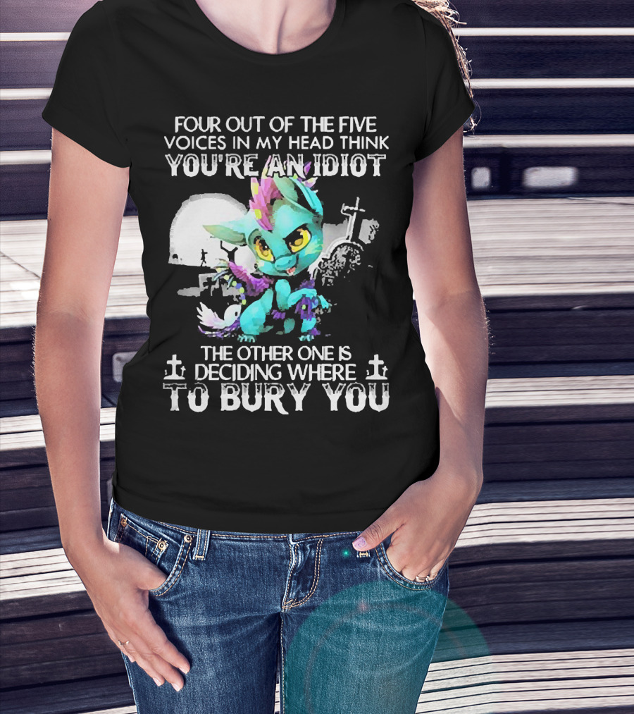 Four Out Of The Five Voices In My Head Think You're An Idiot The Other One Is Deciding Where To Bury You Cute Colorful Dragon With Graveyard Scene T-Shirt