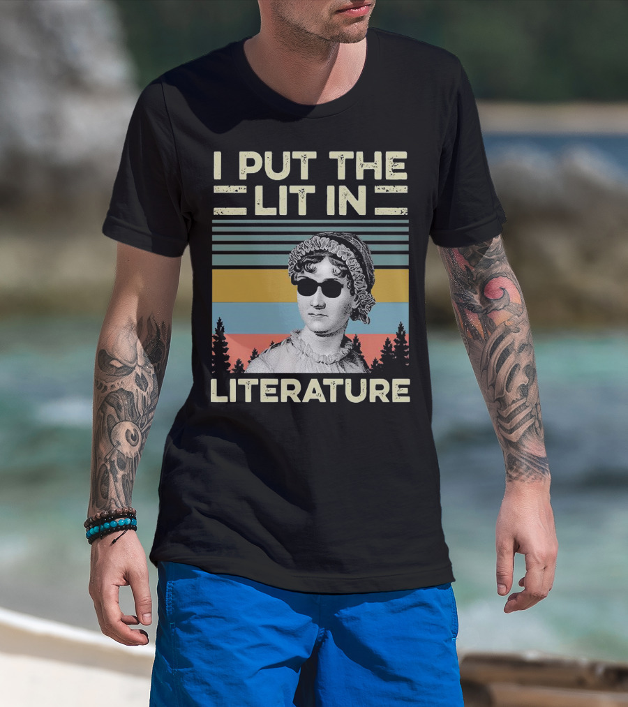 I Put The Lit In Literature Jane Austen Vintage Sunglasses Retro Forest Stripes T-Shirt