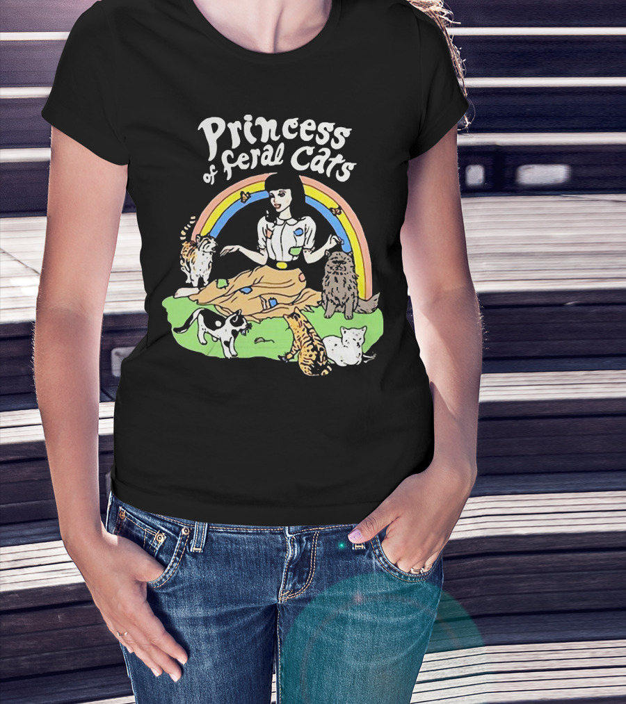 Princess Of Feral Cats With Rainbow And Cats In T-Shirt