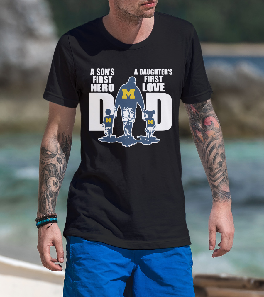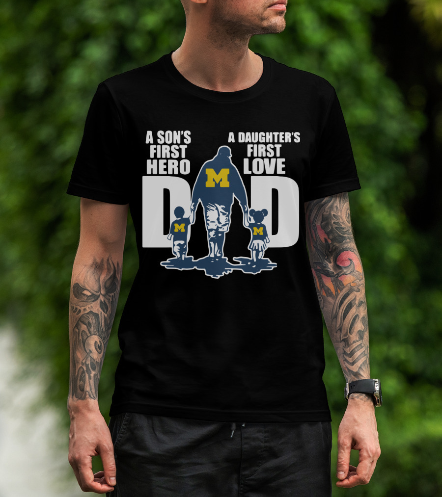Michigan Wolverines Dad A Son's First Hero A Daughter's First Love Walking Family T-Shirt
