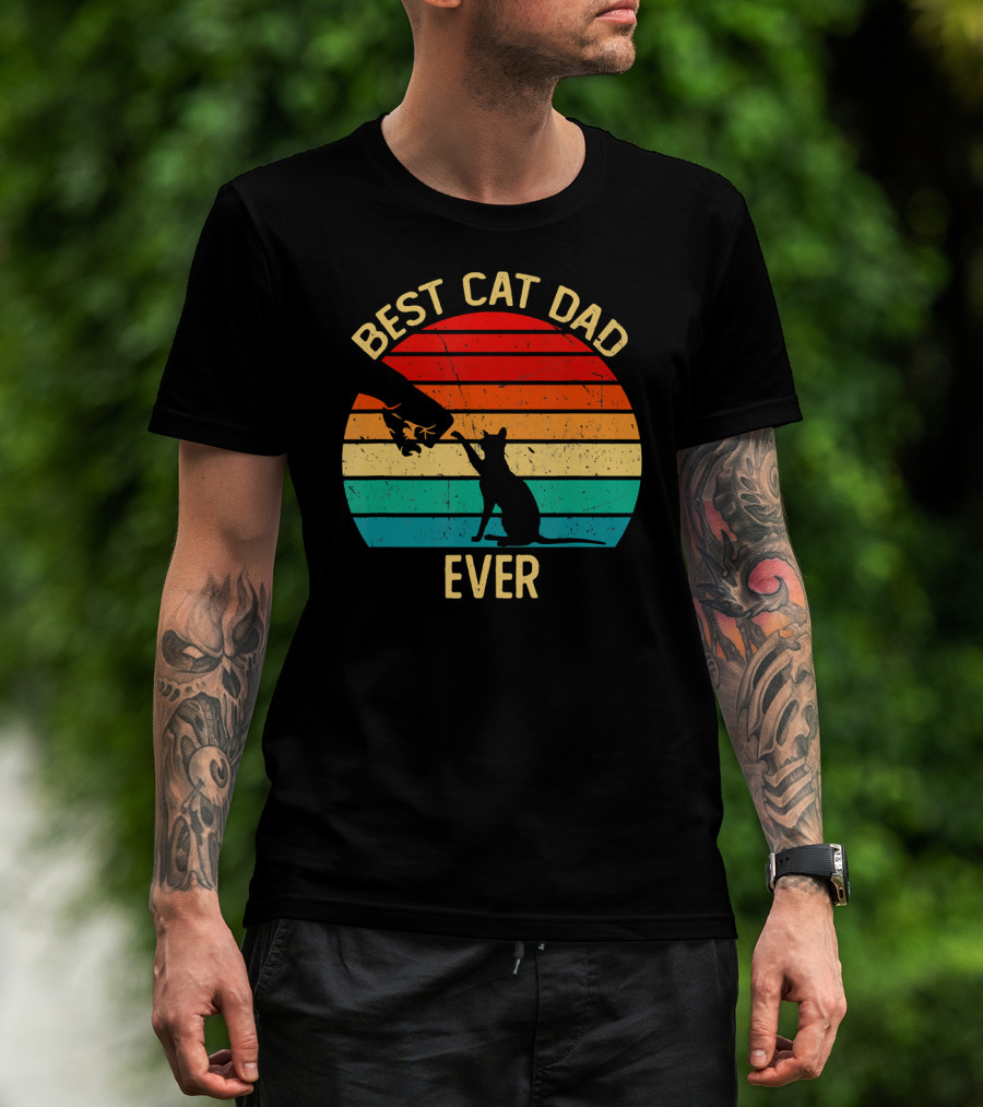 The Best Cat Dad Ever Retro Vintage Paw Fist Bump Silhouette Sunset T-shirt is designed for everyday wear and a consistent fit. Fabric is pre-shrunk ring-spun cotton with durable stitching. See the size chart below for exact measurements.