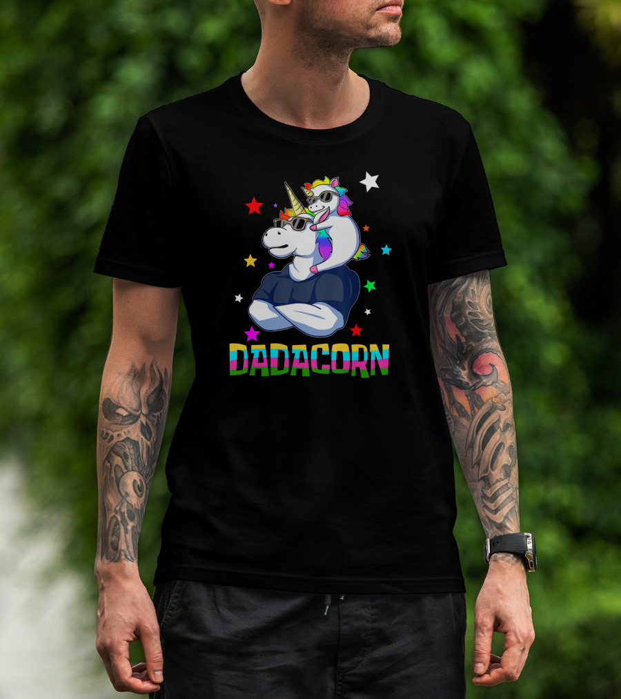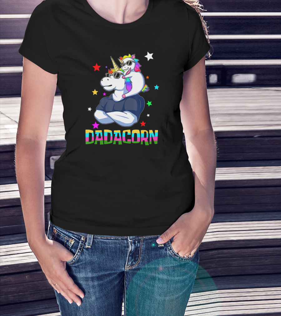 Dadacorn Muscle Unicorn Dad Baby Christmas Papa Stars T-Shirt