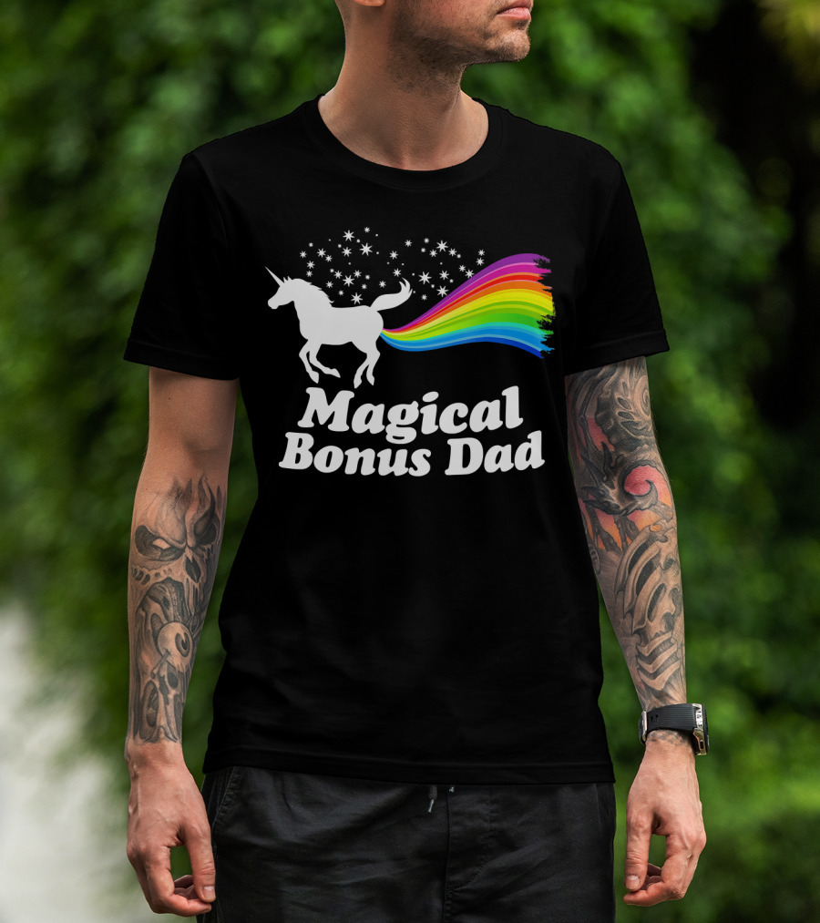 Magical Bonus Dad Unicorn With Rainbow And Stars T-Shirt