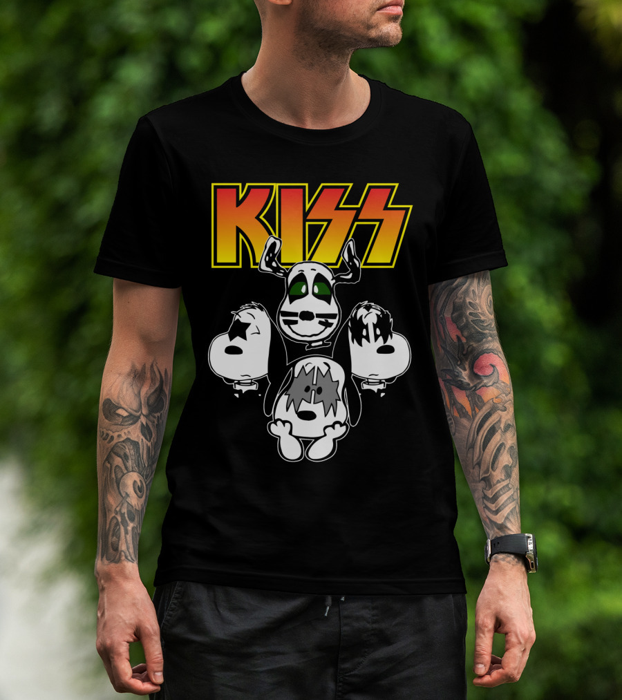 The Kiss Snoopy Band T-shirt is designed for everyday wear and a consistent fit. Fabric is pre-shrunk ring-spun cotton with durable stitching. See the size chart below for exact measurements.