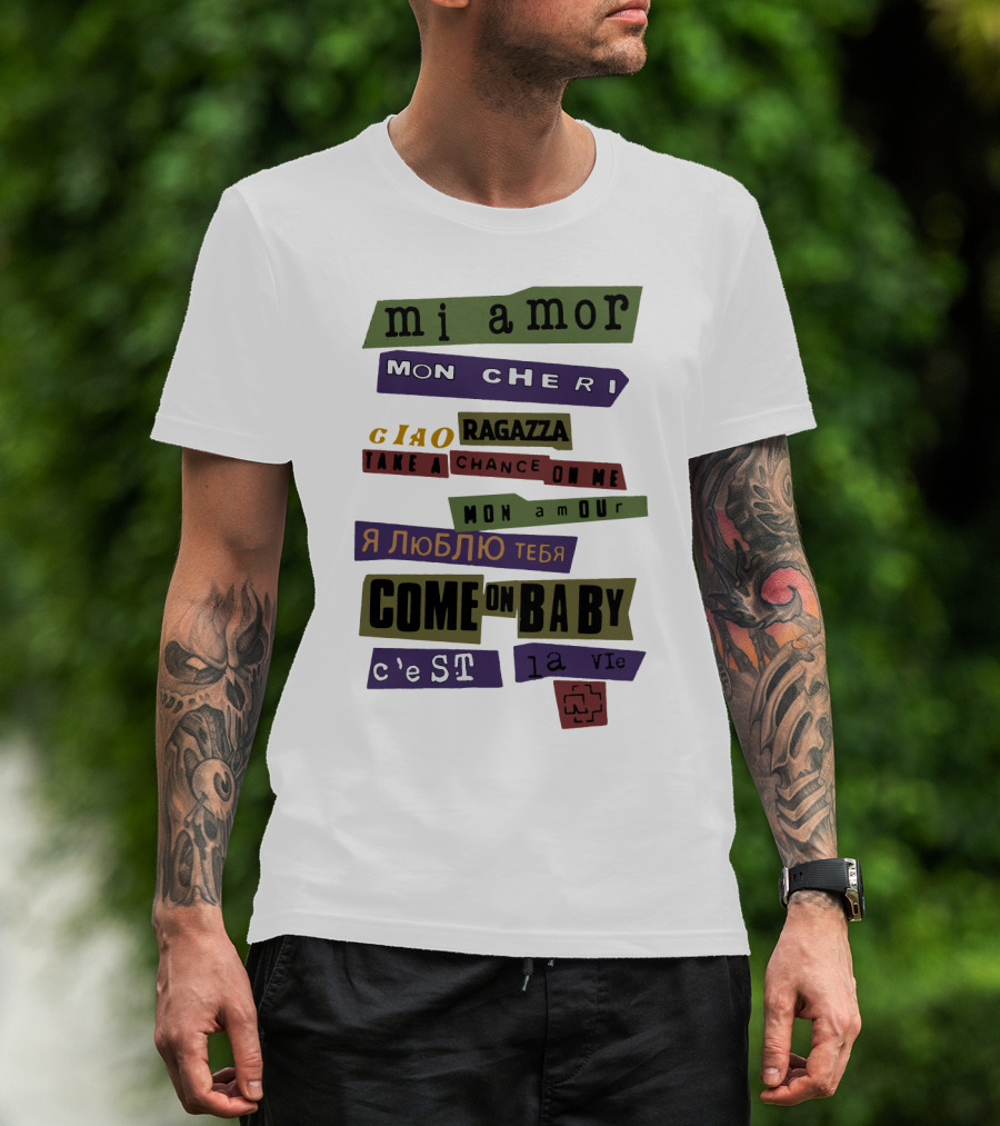 The Mi Amor Mon Cheri Ciao Ragazza Take A Chance On Me Я Люблю Тебя Come On Baby C'est La Vie Mon Amour T-shirt is designed for everyday wear and a consistent fit. Fabric is pre-shrunk ring-spun cotton with durable stitching. See the size chart below for exact measurements.