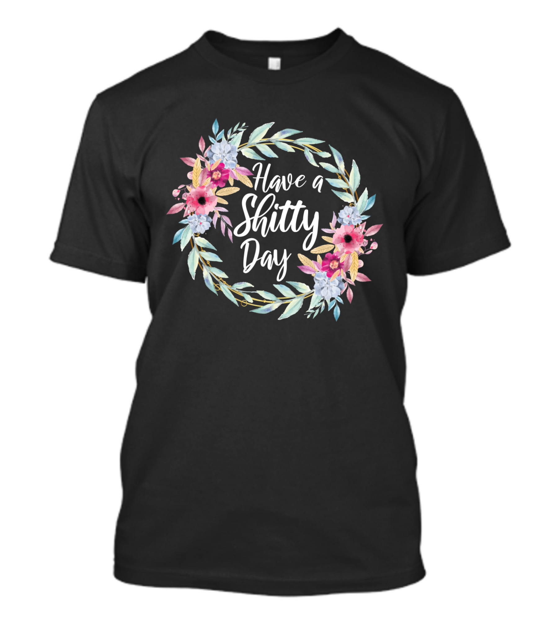 The Have a Shitty Day Floral Wreath with Roses and Leaves T-shirt is designed for everyday wear and a consistent fit. Fabric is pre-shrunk ring-spun cotton with durable stitching. See the size chart below for exact measurements.