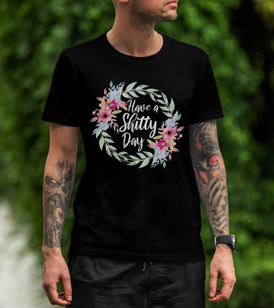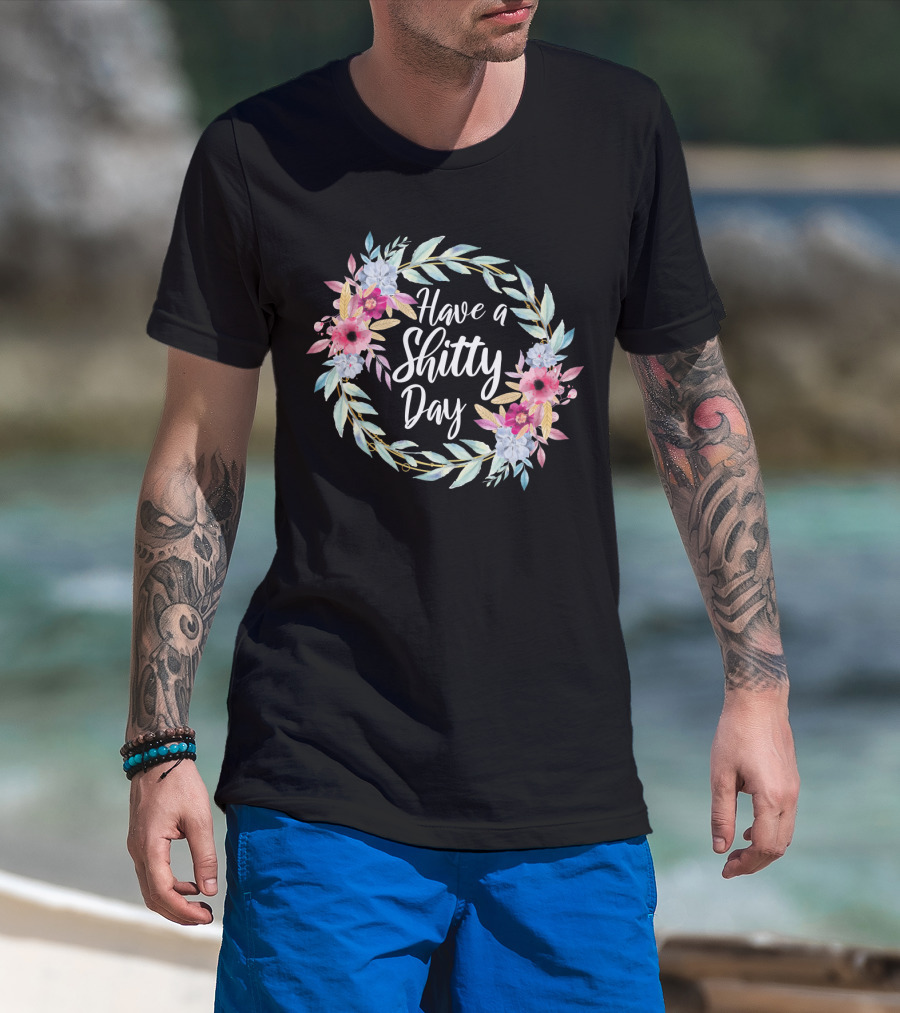 Have A Shitty Day Floral Wreath With Roses And Leaves T-Shirt