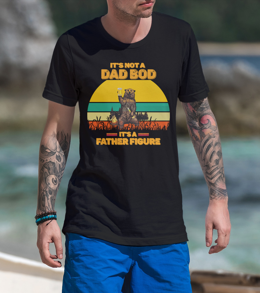 It's Not A Dad Bod It's A Father Figure Bear Holding Beer Vintage Sunset T-Shirt