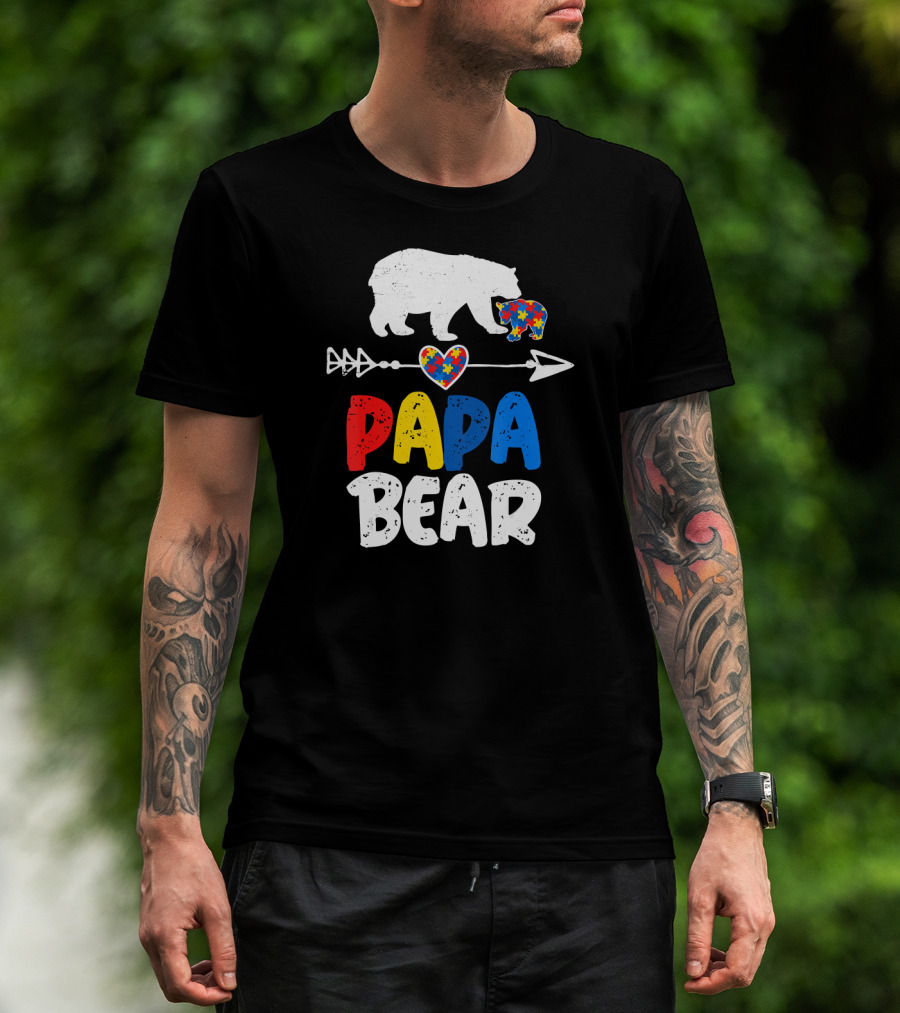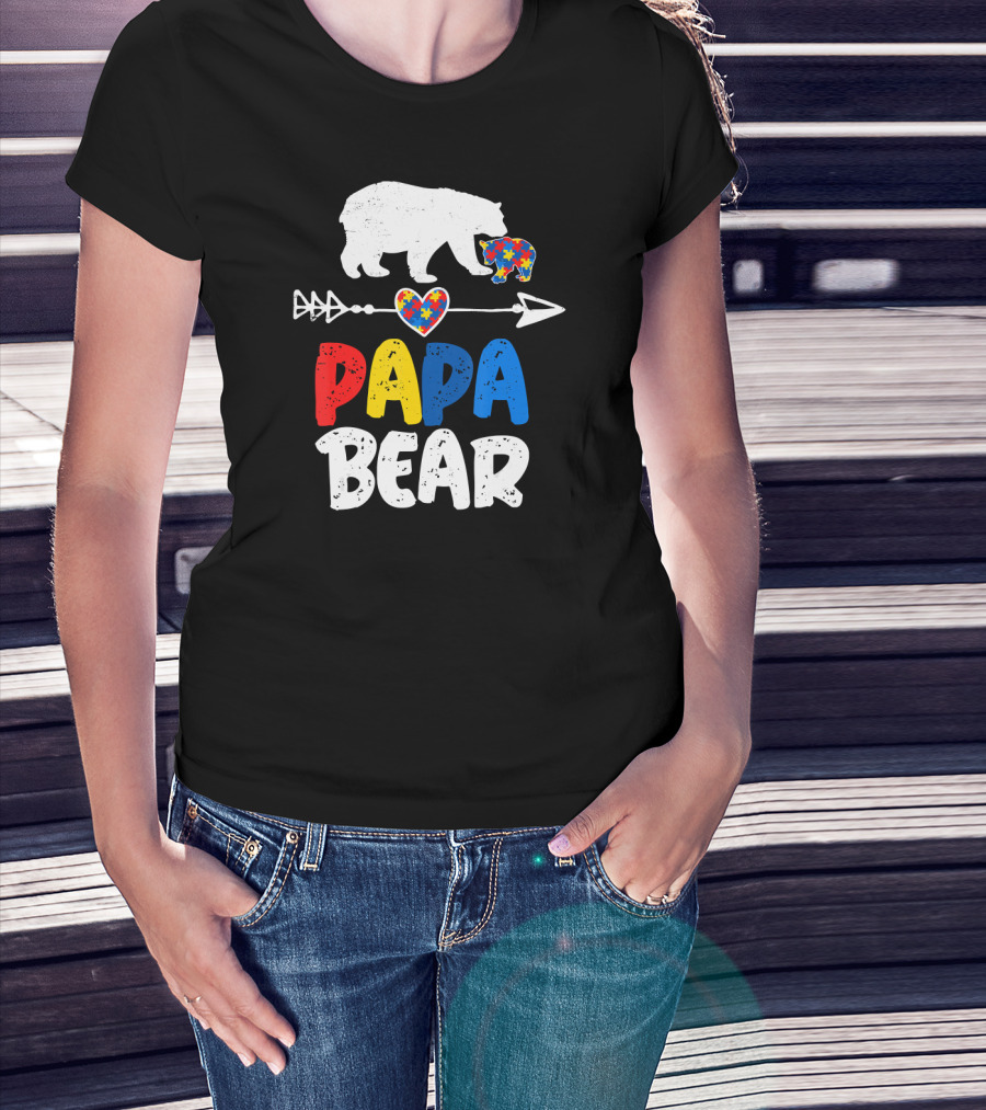 Papa Bear Autism Awareness Puzzle Arrow Heart T-Shirt