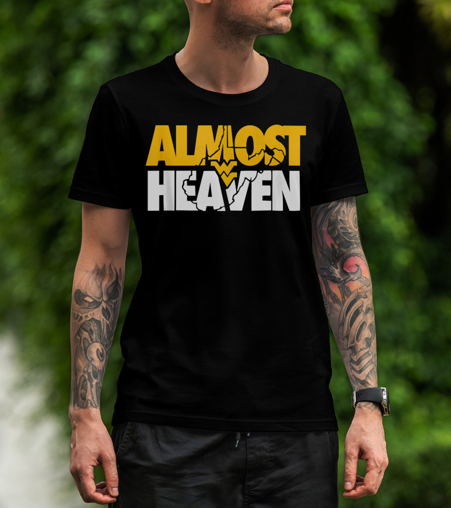 Almost Heaven West Virginia Bold Text With State Silhouette And Mountain Elements T-Shirt