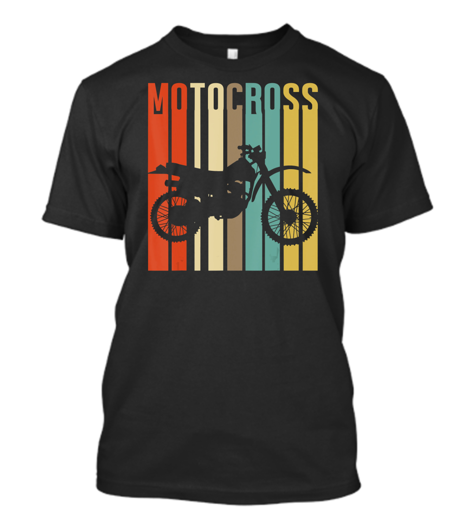 The Vintage Motocross Bike Silhouette on Retro Stripes T-shirt is designed for everyday wear and a consistent fit. Fabric is pre-shrunk ring-spun cotton with durable stitching. See the size chart below for exact measurements.