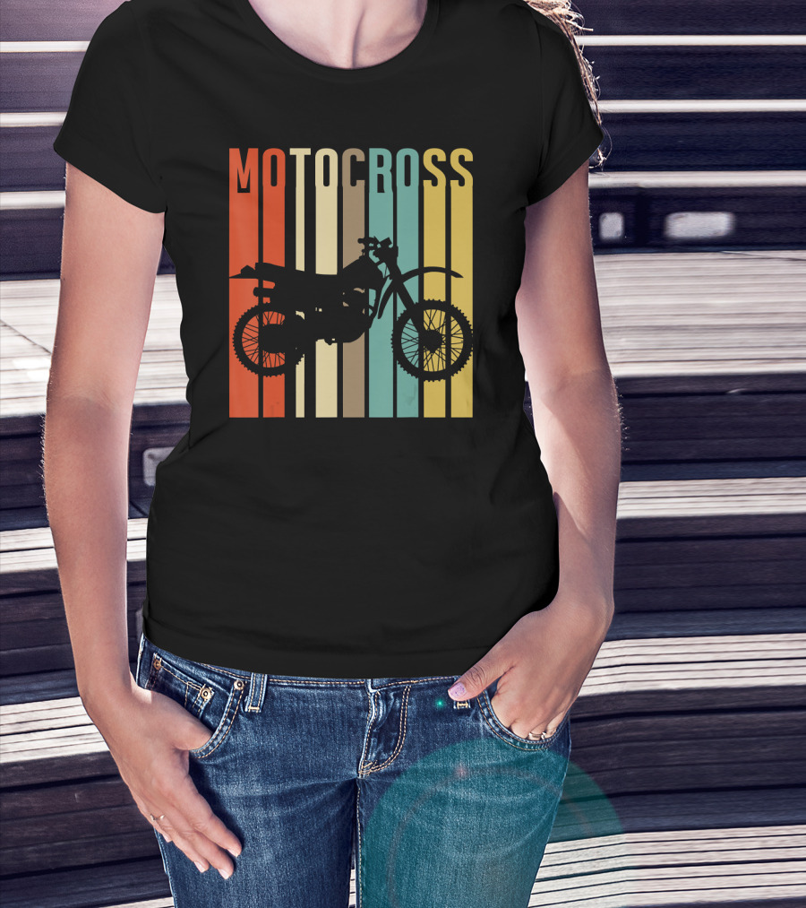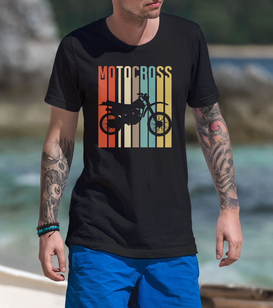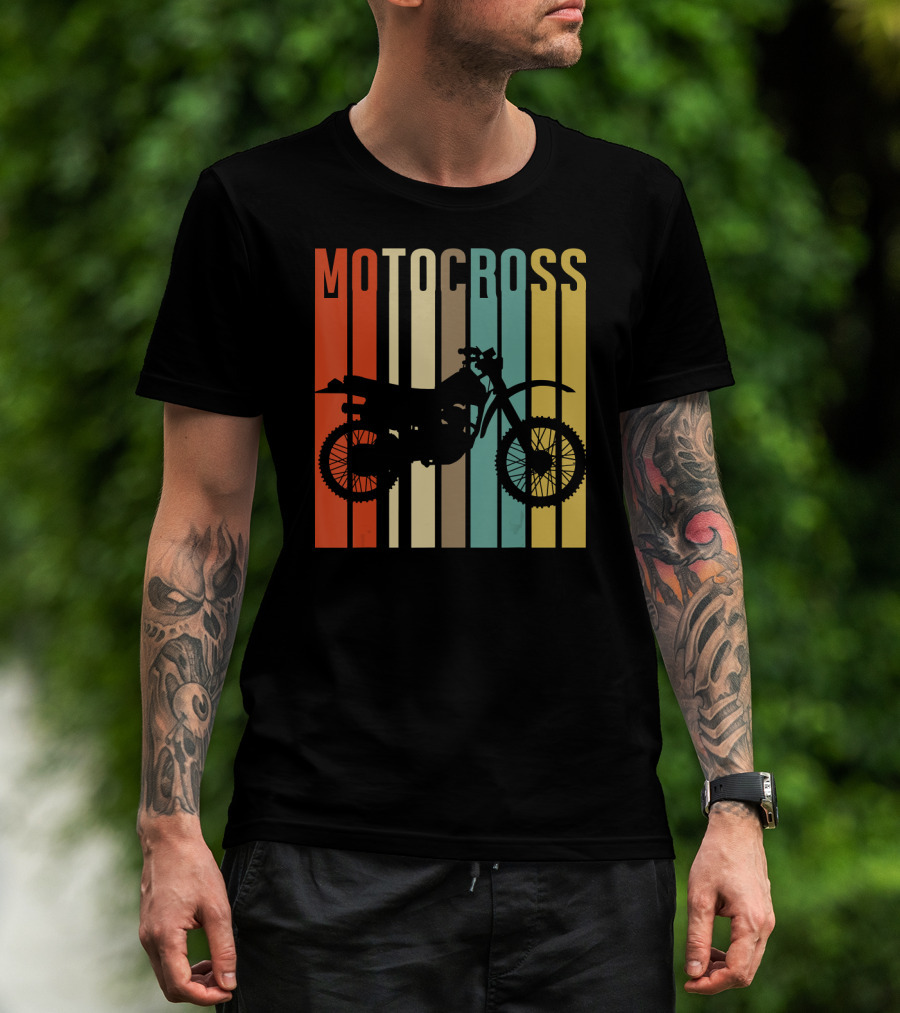 Vintage Motocross Bike Silhouette On Retro Stripes T-Shirt