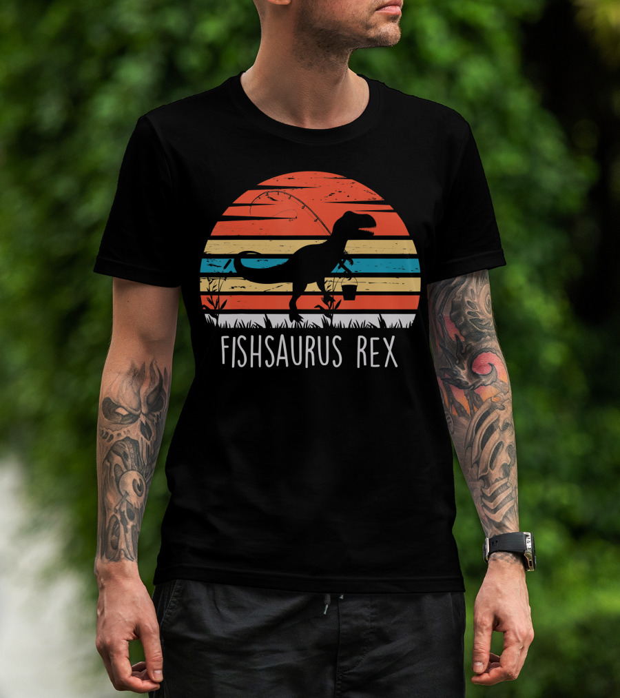Fishsaurus Rex Dinosaur Vintage Fishing Sunset T-Shirt