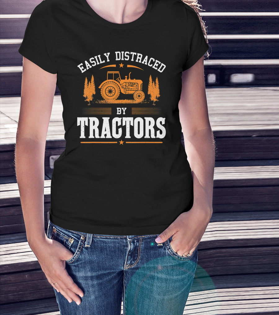 Easily Distracted By Tractors Funny Farming Tractor Lover T-Shirt