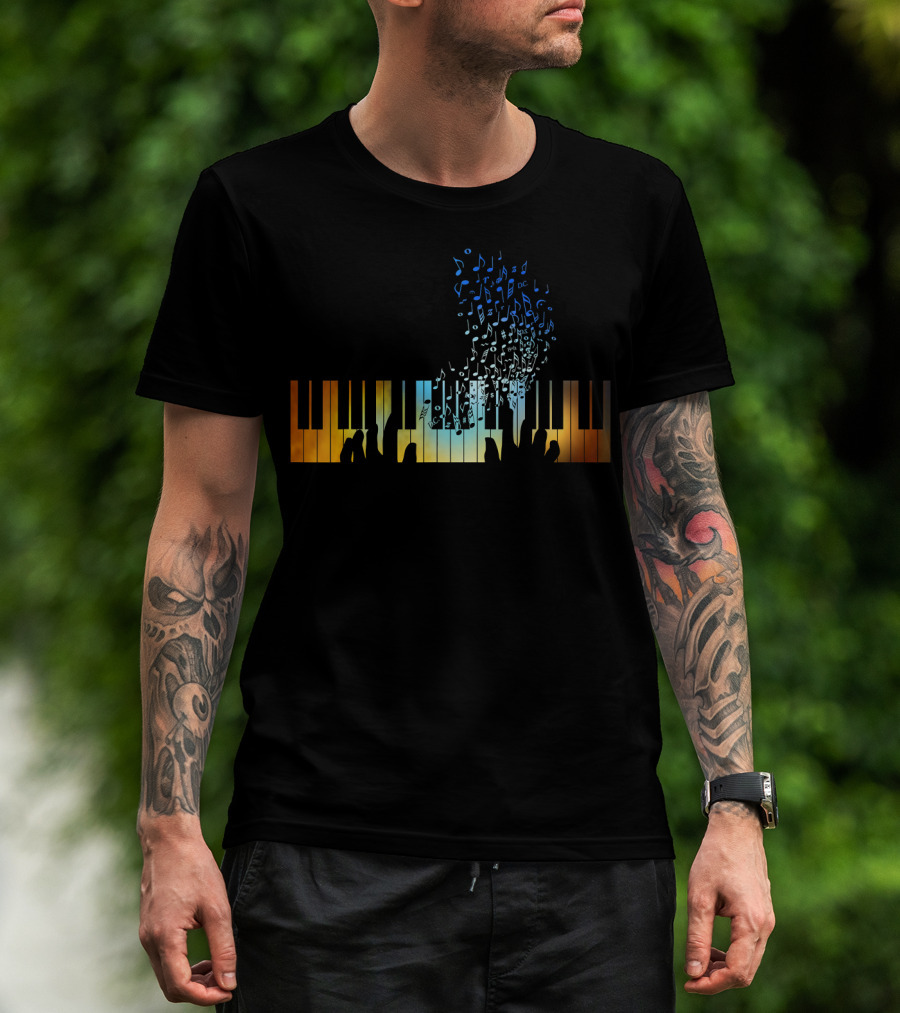 Musical Notes Rising From Colorful Keyboard Piano T-Shirt