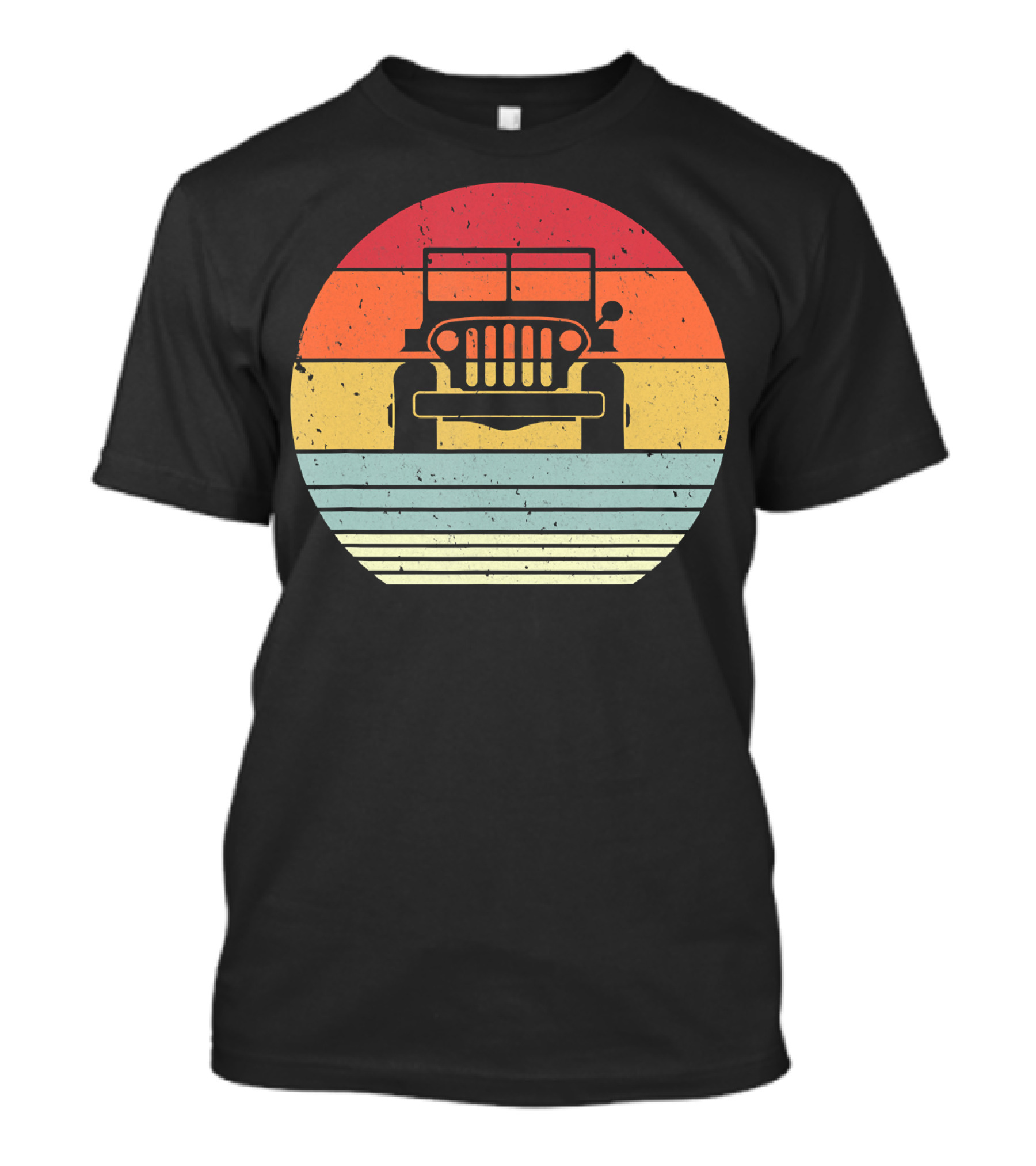 The Retro Style Off Road 4X4 Vintage Jeep Silhouette Sunset Stripes T-shirt is designed for everyday wear and a consistent fit. Fabric is pre-shrunk ring-spun cotton with durable stitching. See the size chart below for exact measurements.