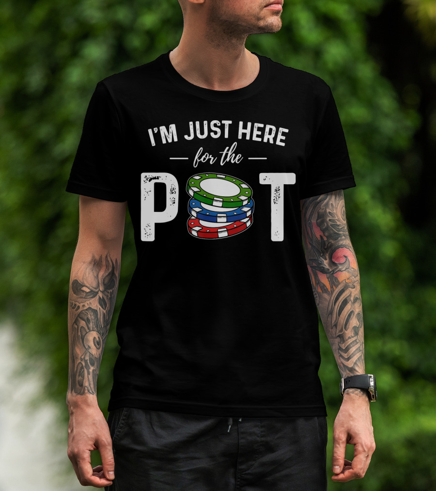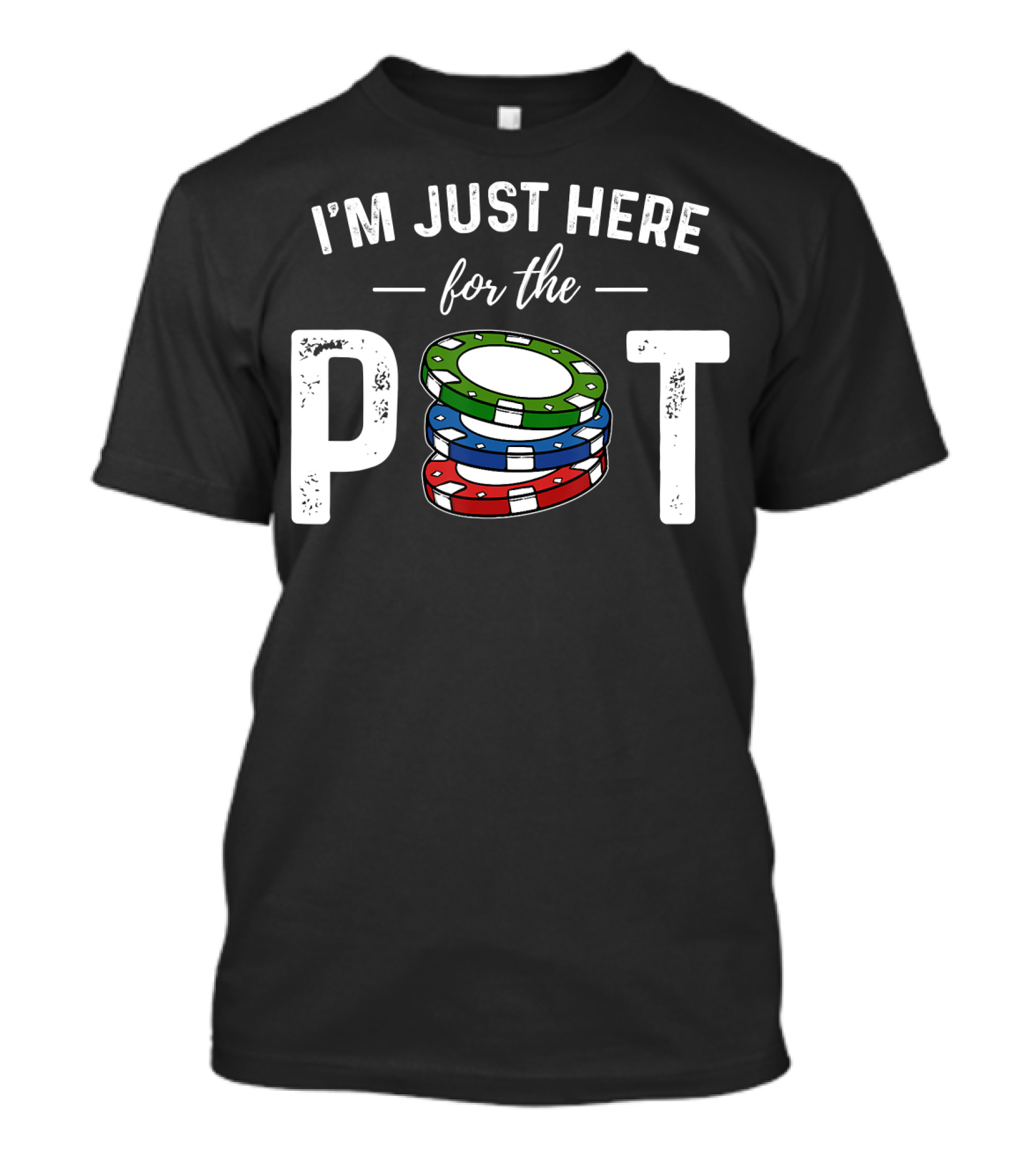 The I'm Just Here For The Poker Pot T-shirt is designed for everyday wear and a consistent fit. Fabric is pre-shrunk ring-spun cotton with durable stitching. See the size chart below for exact measurements.