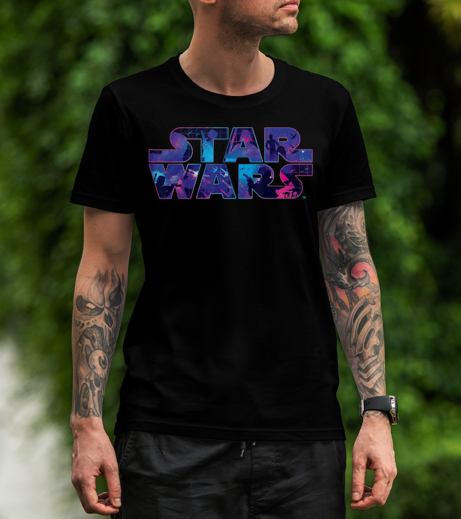 The Star Wars Retro 90s Silhouette Twinkling Stars T-shirt is designed for everyday wear and a consistent fit. Fabric is pre-shrunk ring-spun cotton with durable stitching. See the size chart below for exact measurements.