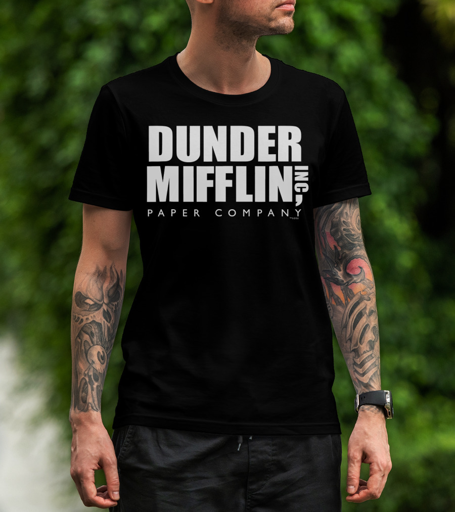 The The Office Dunder Mifflin Inc Paper Company Official Comfortable T-shirt is designed for everyday wear and a consistent fit. Fabric is pre-shrunk ring-spun cotton with durable stitching. See the size chart below for exact measurements.