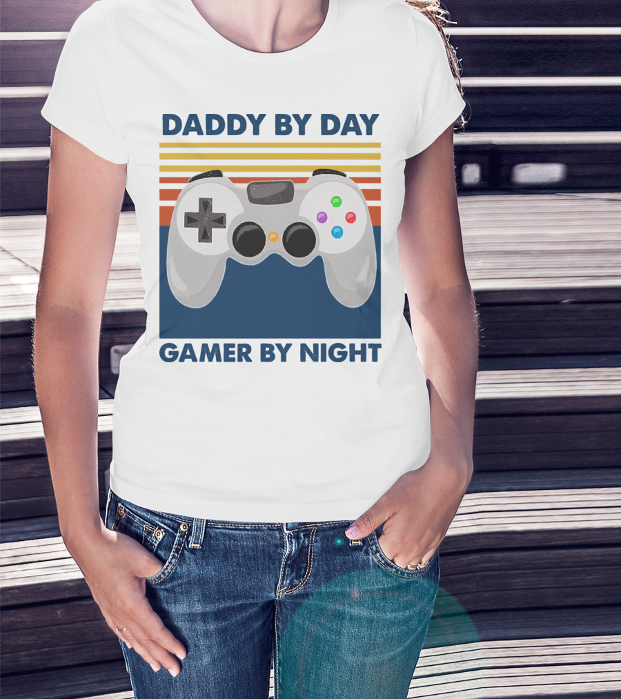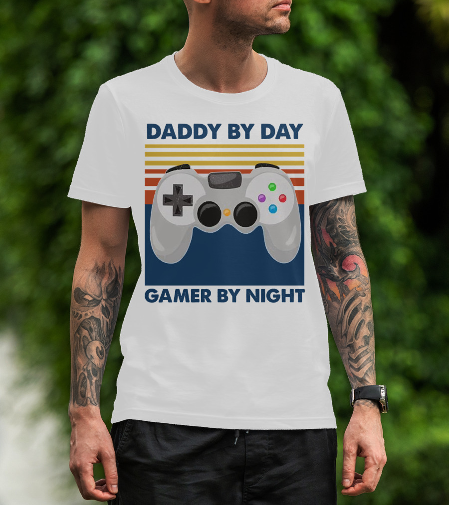 Daddy By Day Gamer By Night Retro Game Controller T-Shirt