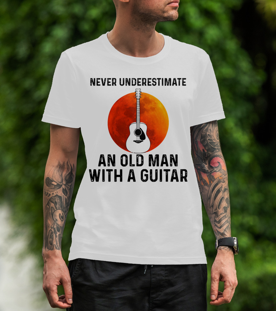 Never Underestimate An Old Man With A Guitar And Lunar Eclipse Background T-Shirt