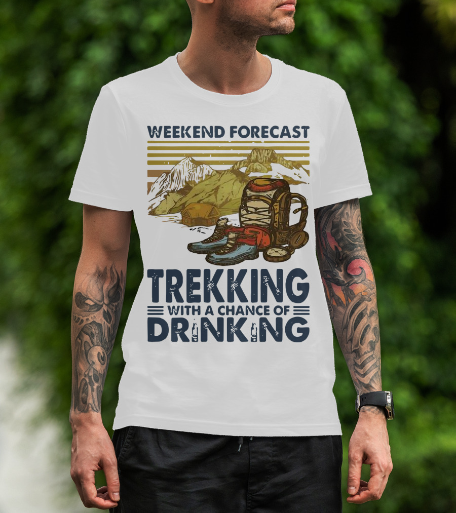 Weekend Forecast Trekking With A Chance Of Drinking Vintage Backpack Boots Mountains T-Shirt