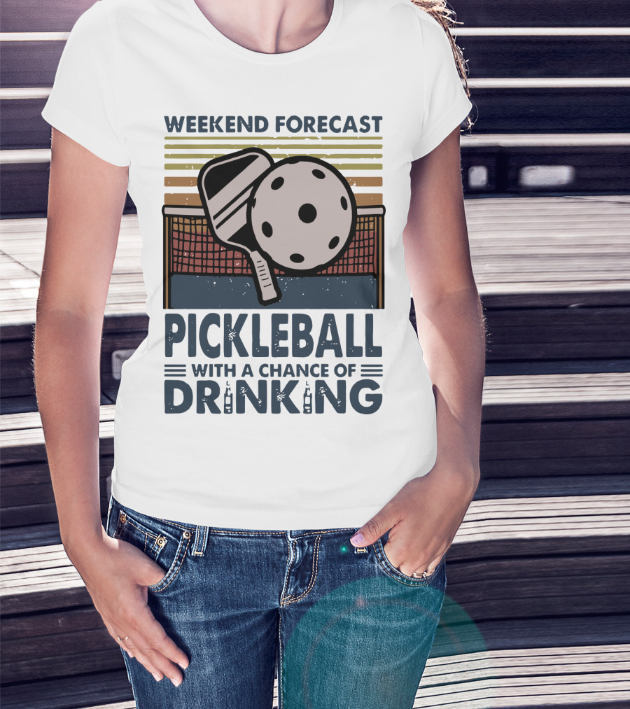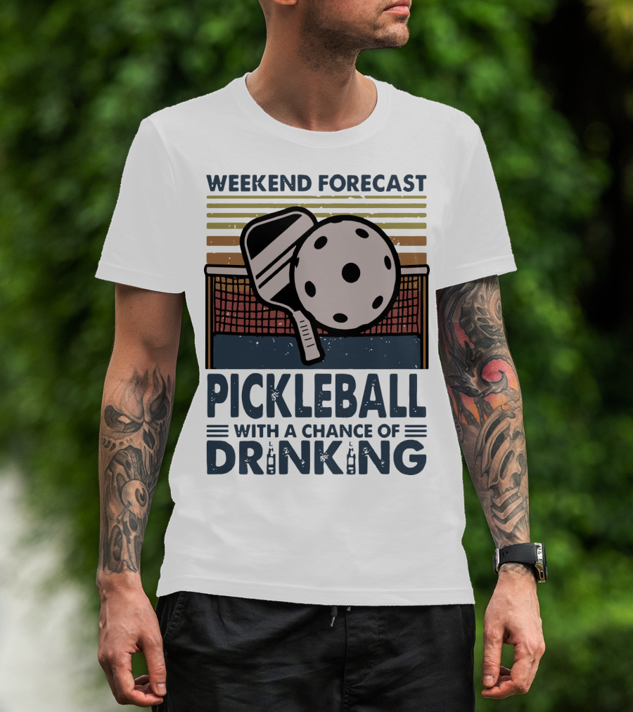 Weekend Forecast Pickleball With A Chance Of Drinking Paddle And Ball Retro T-Shirt