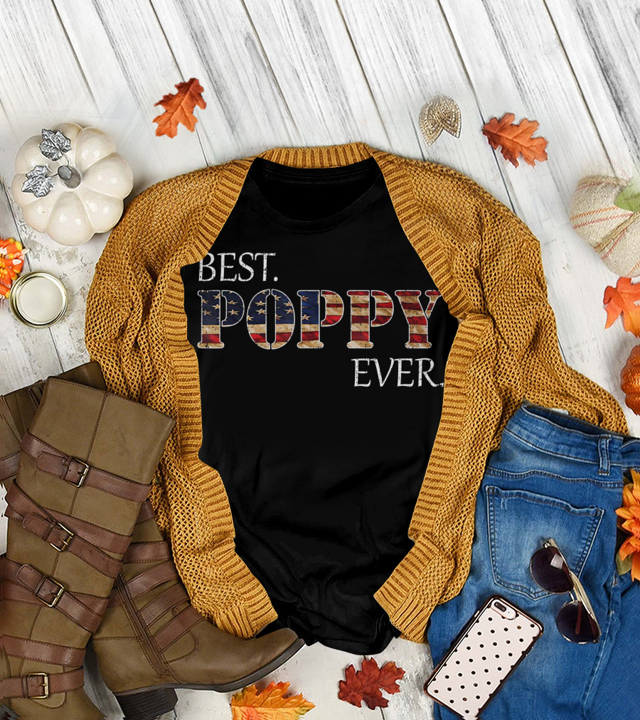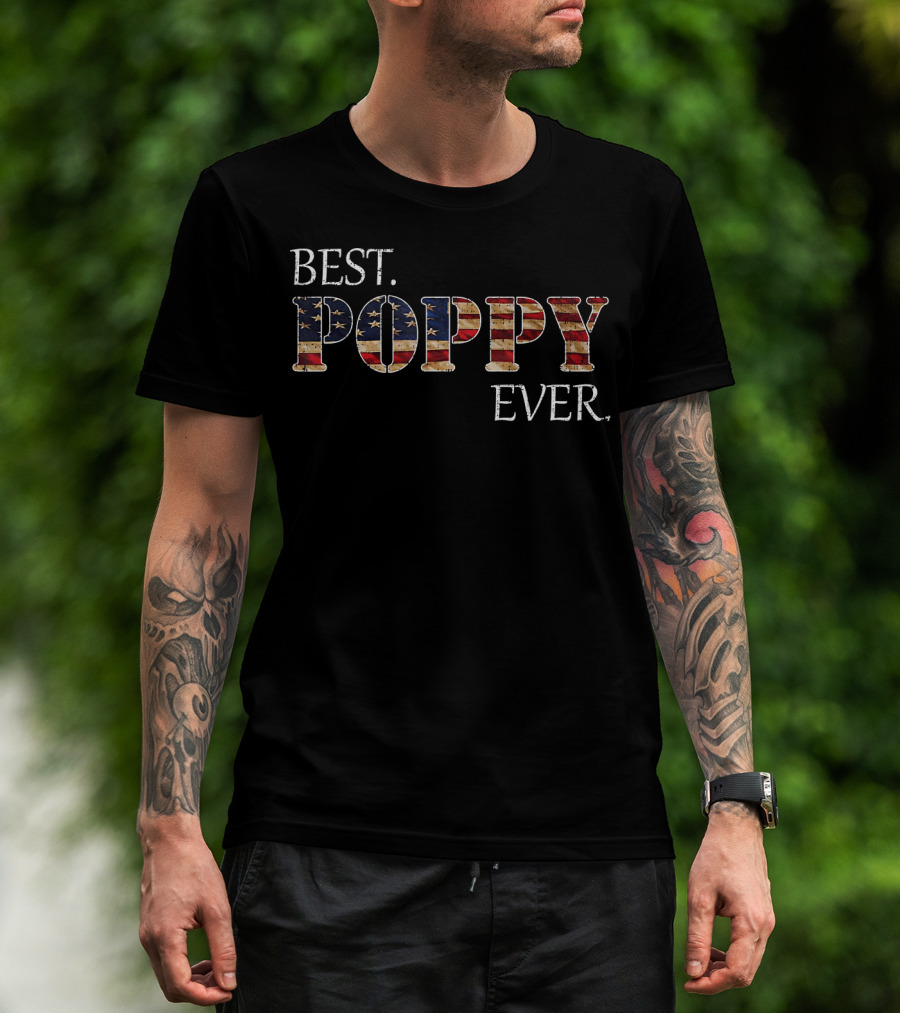 Best Poppy Ever American Flag Vintage Patriotic T-Shirt