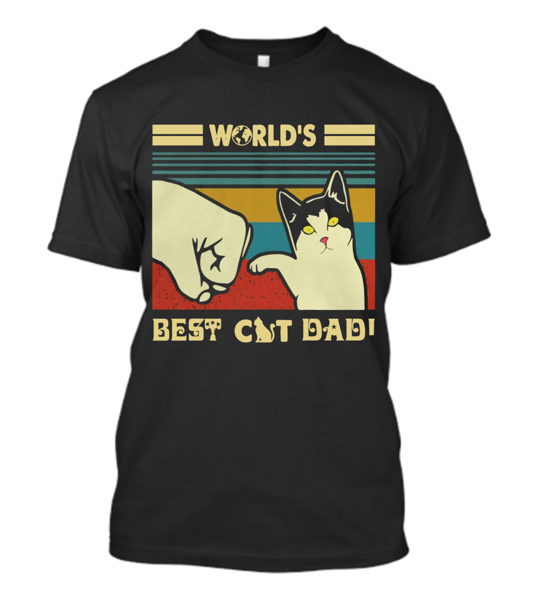 The World's Best Cat Dad Fist Bump Retro Stripe T-shirt is designed for everyday wear and a consistent fit. Fabric is pre-shrunk ring-spun cotton with durable stitching. See the size chart below for exact measurements.
