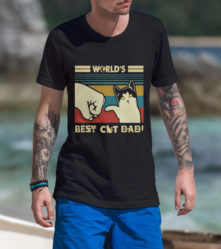 World's Best Cat Dad Fist Bump Retro Stripe T-Shirt