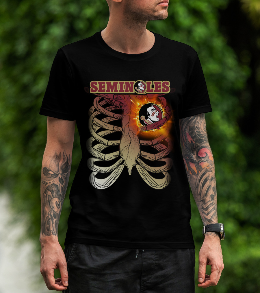 Florida State Seminoles Logo With Fiery Ribcage T-Shirt