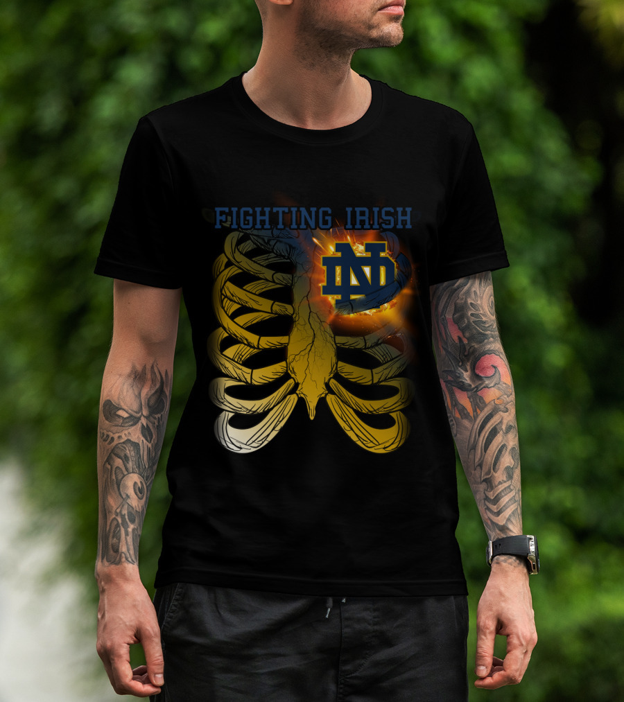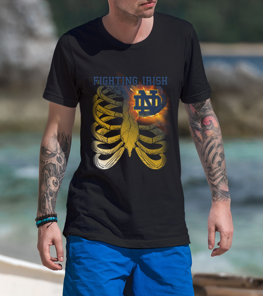 Fighting Irish Notre Dame ND Logo With Fiery Rib Cage T-Shirt