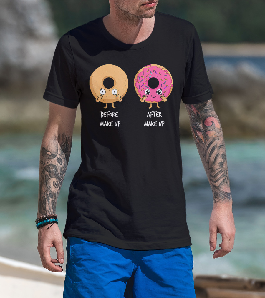Donut Transformation Before After Makeup With Sprinkles T-Shirt