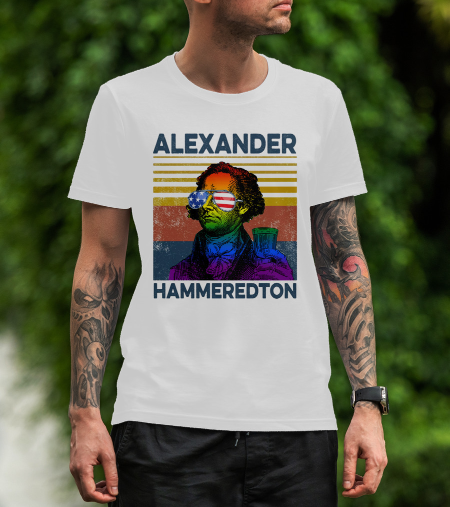 ALEXANDER HAMMEREDTON AMERICAN FLAG SUNGLASSES BEER DRINK T-Shirt